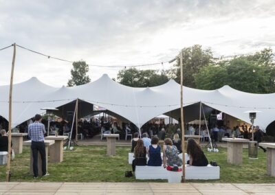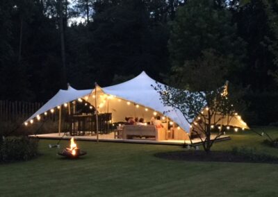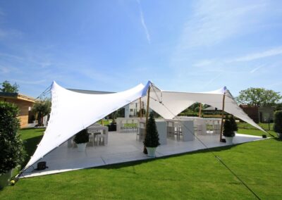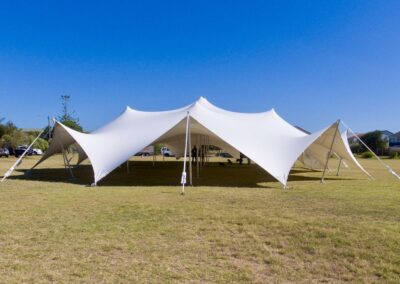 Crafted from high-performance stretch fabric, each tent offers outstanding waterproofing, UV protection and wind resistance, ensuring reliability in all weather conditions. The material’s flexibility allows the tent to be tensioned into numerous configurations, giving you complete creative freedom to design the exact mood and layout your event requires. Whether you need an intimate 50-guest setup or a sprawling multi-tent installation for hundreds of guests, our stretch tents adapt effortlessly.